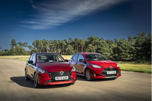 左:MAZDA2、右:MAZDA2 Hybrid(改良前モデル)画像 MAZDA UK マツダオリジナルの「MAZDA2」とトヨタ・ヤリスハイブリッドOEMの「MAZDA2 Hybrid」が併売されている欧州市場ですが、英国マツダは来年以降も併売する方針を表明しています。