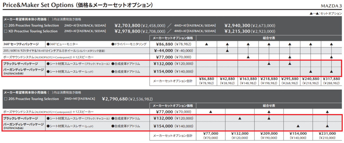 注意点としてはMAZDA3セダンにこれまで設定されていたピュアホワイトレザー内装が廃止されてブラックレザーのみになってしまった事。