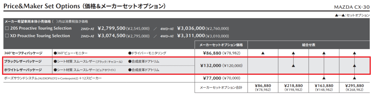 一方CX-30はBlack Tone Editionのみとなっていますが、MAZDA3と違ってAWDとの組み合わせも選べるのがポイント。
