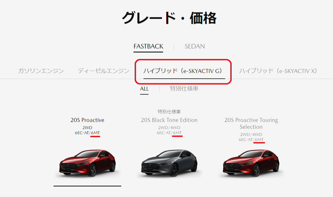 ポイント④:e-SKYACTIV G 2.0搭載グレードにおけるMT車の設定範囲について。