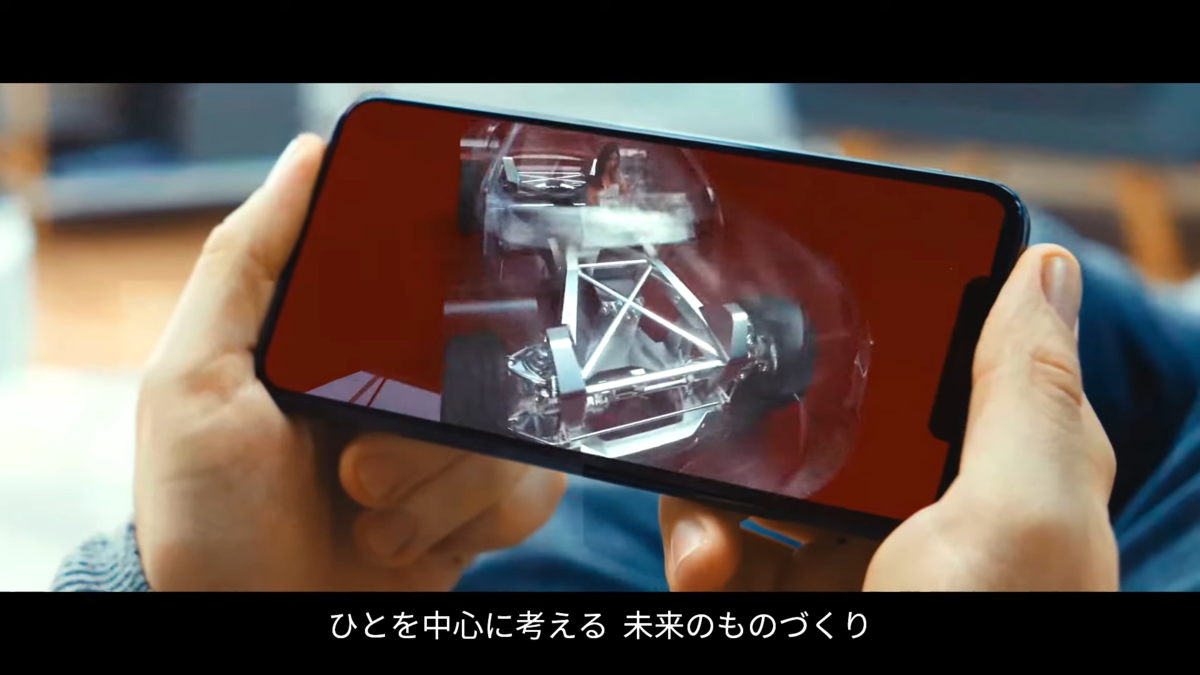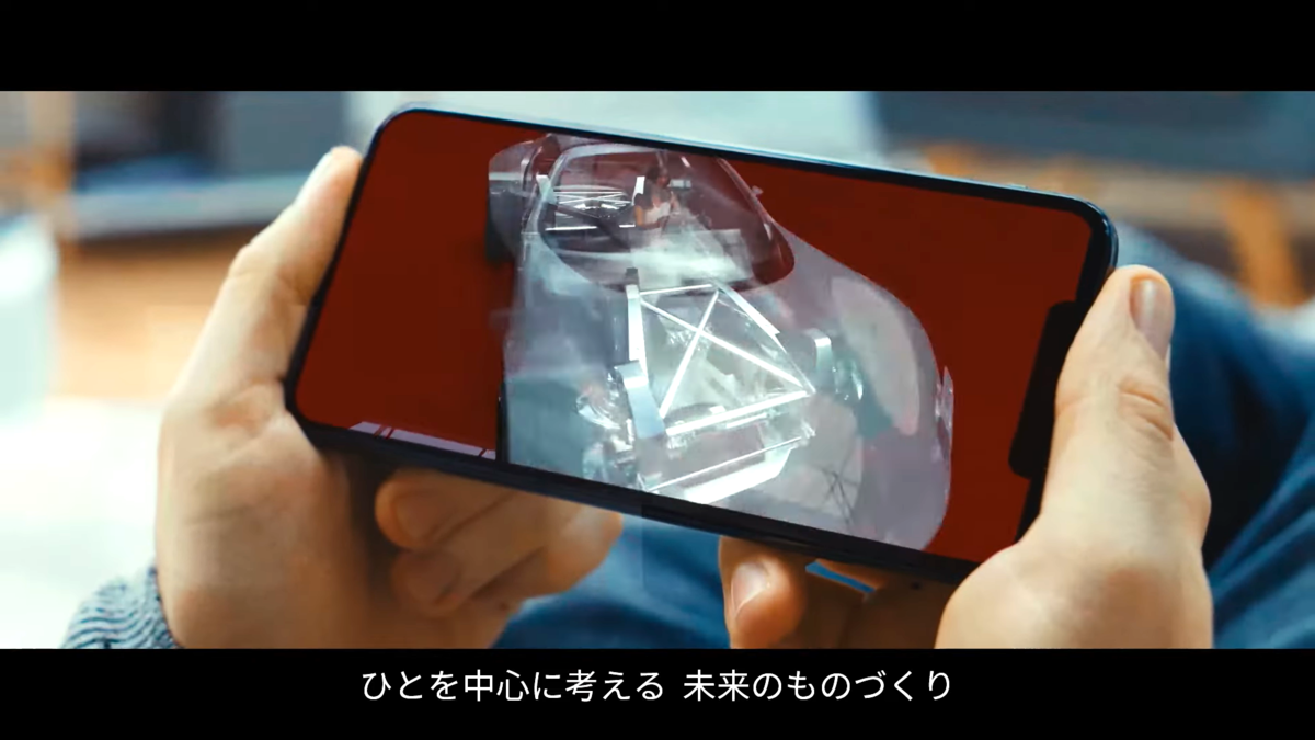 スマホの画面上にビジョンスタディモデルが登場していますが、よく見るとボディフレームはマツダが度々特許出願している「アルミ製スペースフレーム」に似てる気も・・・。