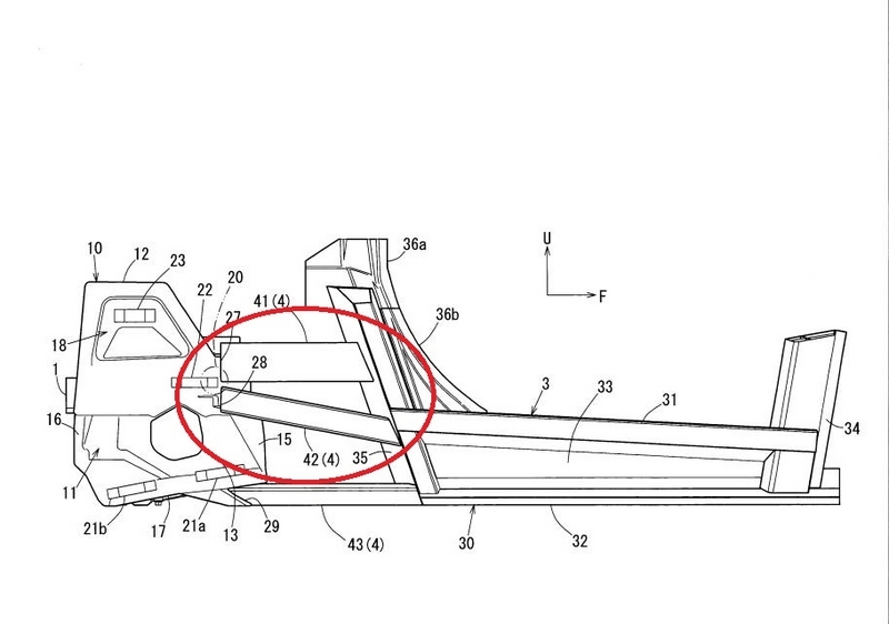 今回無事に登録されたのは2021年8月に出願公開されていた「車両の後部車体構造」という題名の特許2件(説明図は同じ)