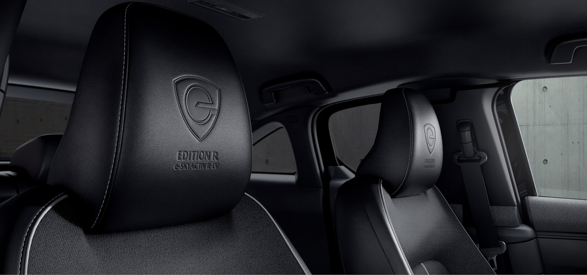 (画像 MAZDA) ②:ヘッドレストにEDITION-Rのエンボス加工を施した専用のブラック内装(合成皮革×クロス)