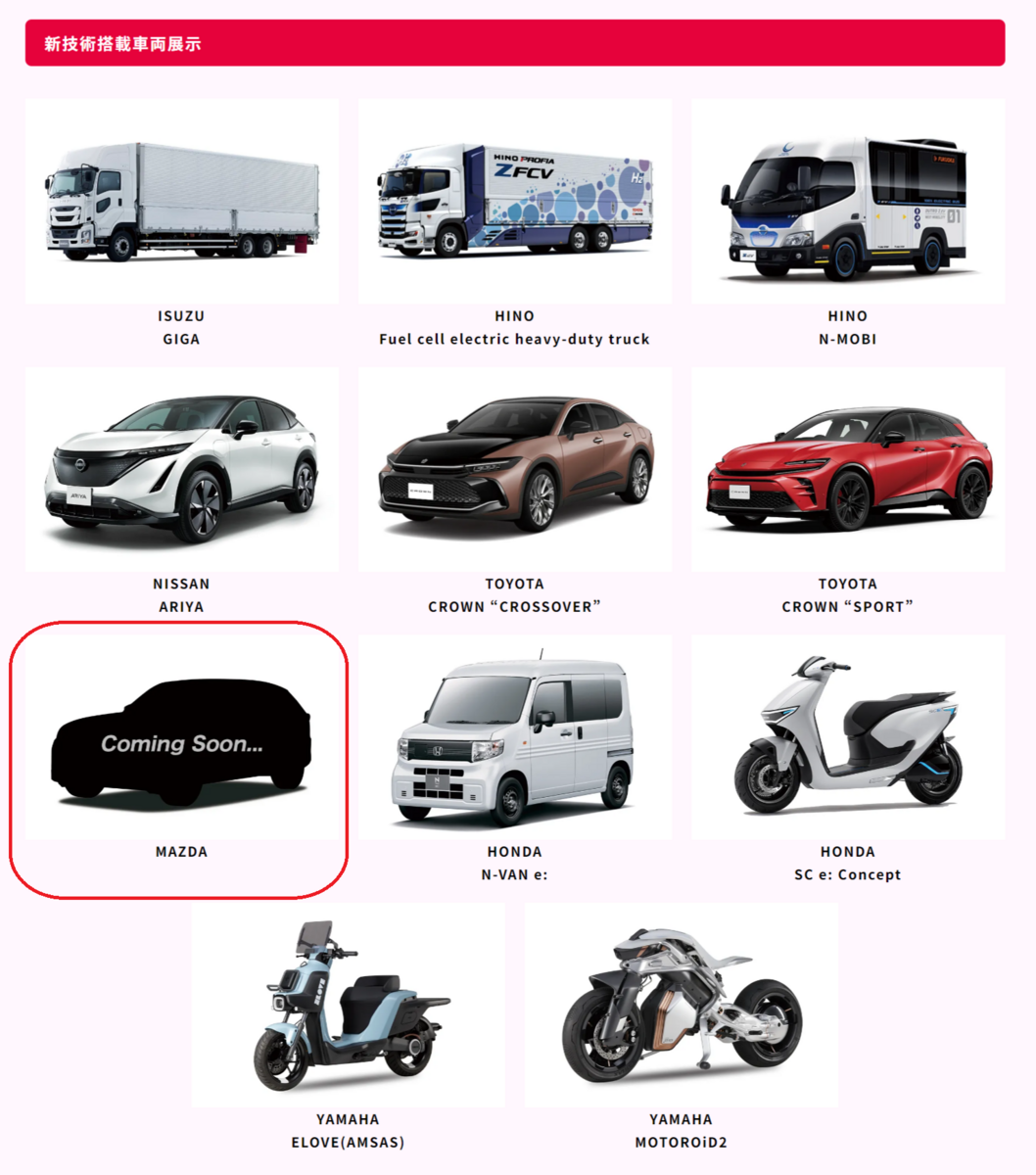 名古屋会場では新技術搭載車展示という企画が予定されており、各メーカーから展示車両が発表されていますが、マツダだけ展示車両が未公開になっていました。