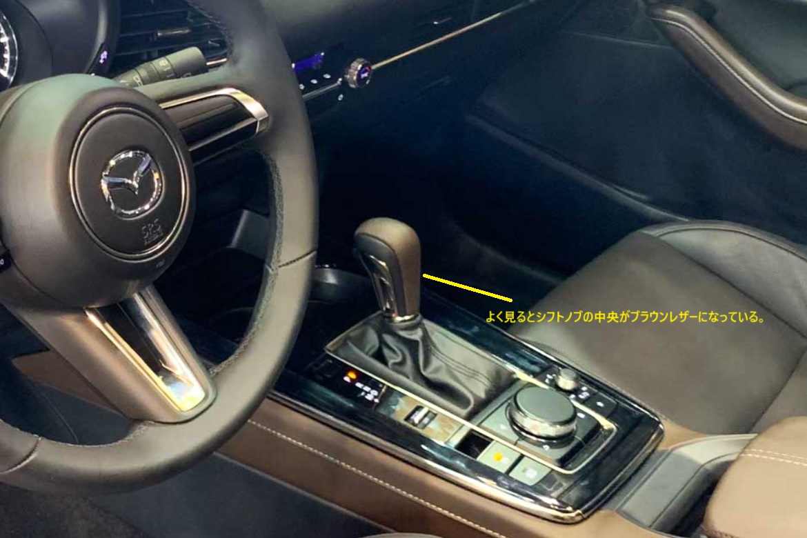 こちらも画像を一見すると変化が無いように見えますが、よく見るとシフトノブ中央がブラウンレザーに変わって2トーン仕様になってるようです。