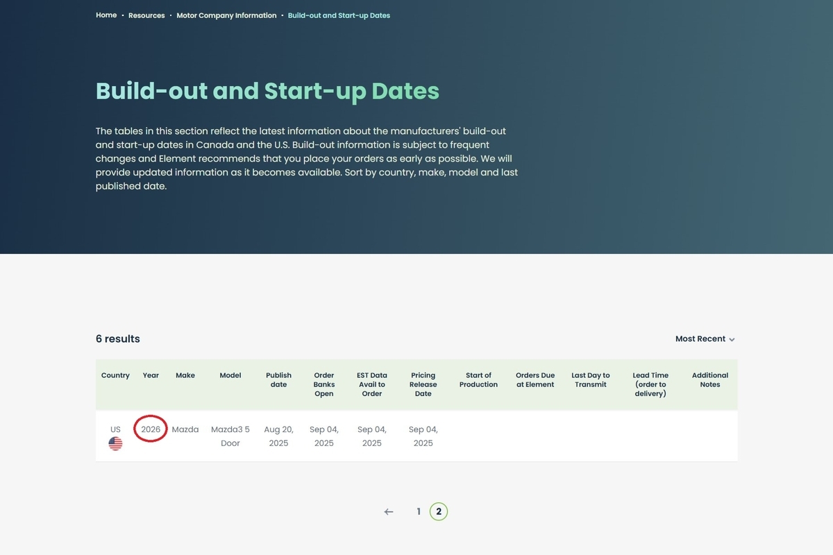 Vehicle Build-out and Start-up Dates | Element Fleet