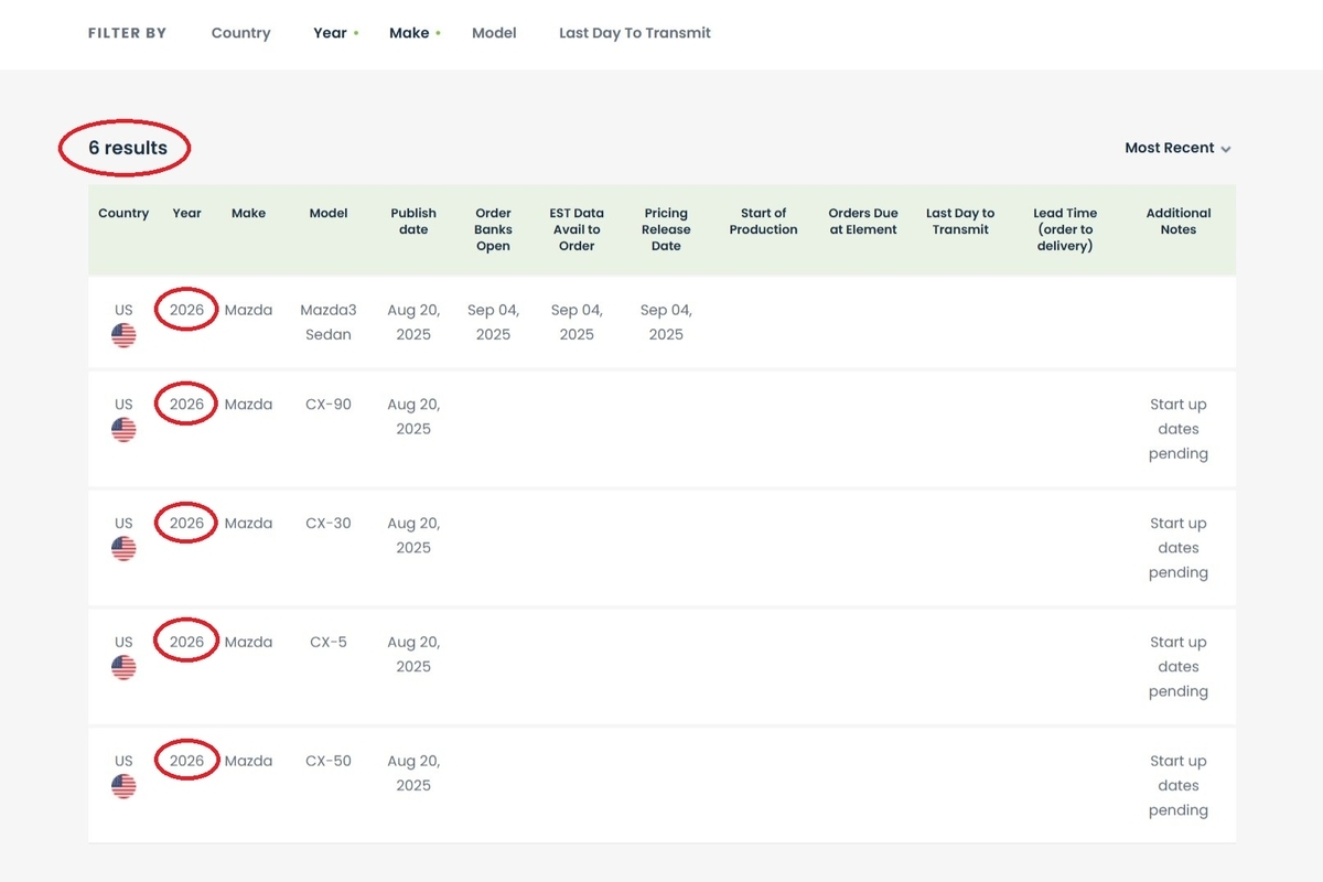 今回値上げだけ発表されたのは関税問題という特殊な事情もあるはずですが、モデルイヤー情報をいち早く公開する米国の自動車リース専門会社Elementfleet.comのデータベースでもマツダの2026年モデル一覧にMX-5は現状含まれてません。