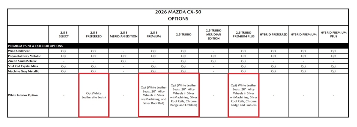 2026年モデルで廃止された「Ash Ochre内装」と「2.5 S Premium Plus」(画像 MAZDA USA) 「Preferred(2.5S/Hybrid)」